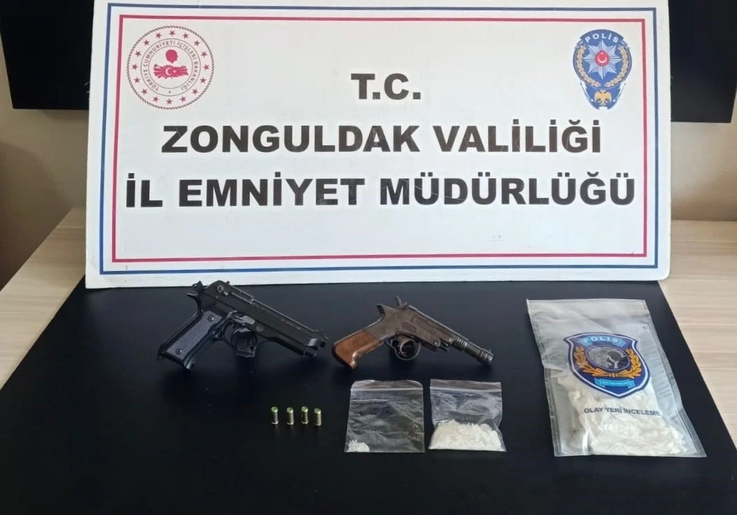 İl Emniyet Müdürlüğü ekiplerince Kdz. Ereğli ilçesinde gerçekleştirilen operasyonda M.Ş. isimli şüpheli gözaltına alındı. Operasyonda yapılan aramalarda 35 gram metamfetamin, 2 tabanca ve 4 tabanca mermisi ele geçirildi.